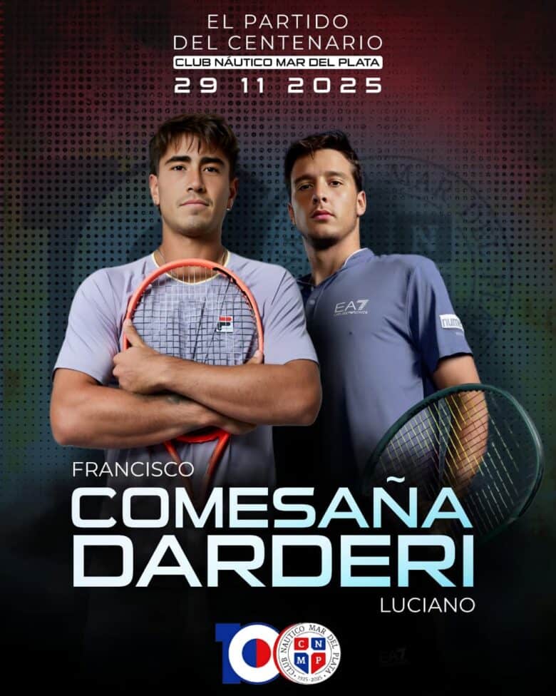 El sábado 29 de noviembre se llevará adelante en la cancha 1 un partido de exhibición entre dos grandes figuras que crecieron en la ciudad: Francisco Comesaña (64) y Luciano Darderi (26), en el marco del Partido del Centenario.