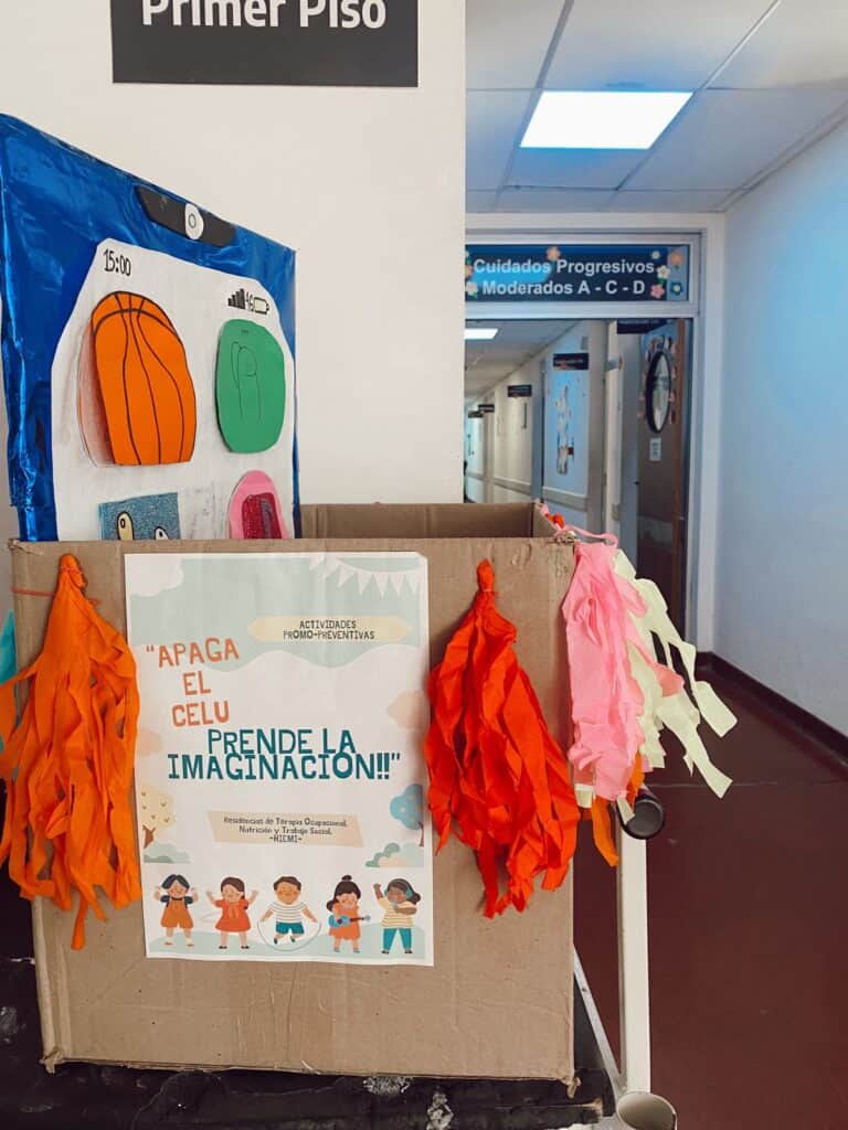 El proyecto, denominado “Apaga el Celu y Prendé la Imaginación”, surge de la observación directa de los profesionales ante la necesidad de transformar el tiempo que los niños y niñas pasan en el hospital. El objetivo: ofrecer una solución de calidad a través del juego activo mientras se informa y empodera a padres y tutores sobre el uso responsable de dispositivos.