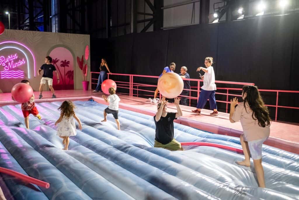 Puertas a Mundos propone un recorrido de una hora a través de 10 universos diferentes, diseñados para despertar la imaginación, el juego y la reflexión, sin distinción de edad. Desde hamacarse entre nubes, caminar por el espacio exterior o sumergirse en una habitación completamente forrada de peluche, cada ambiente invita a redescubrir el asombro y a experimentar desde lo sensorial y lo lúdico.